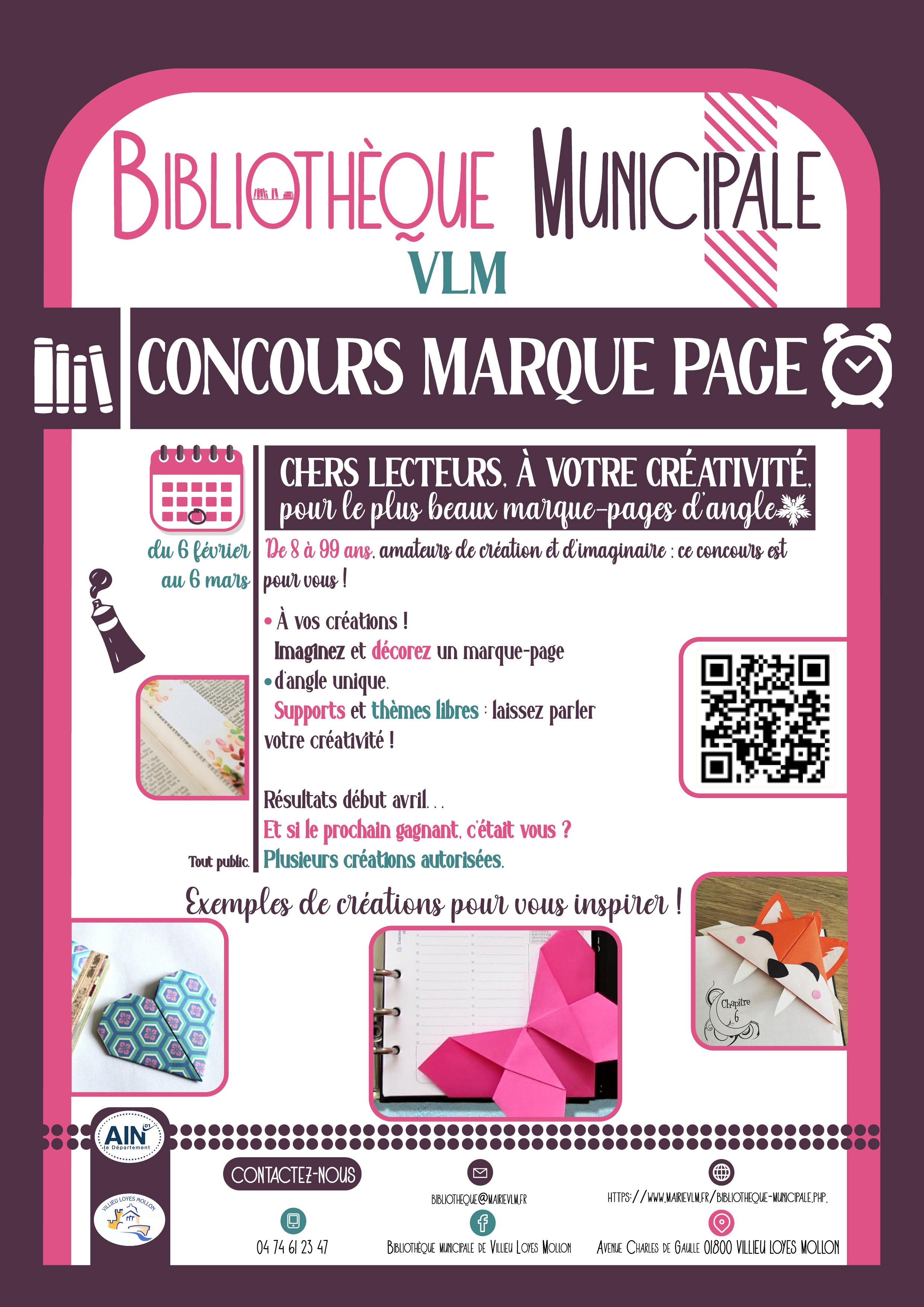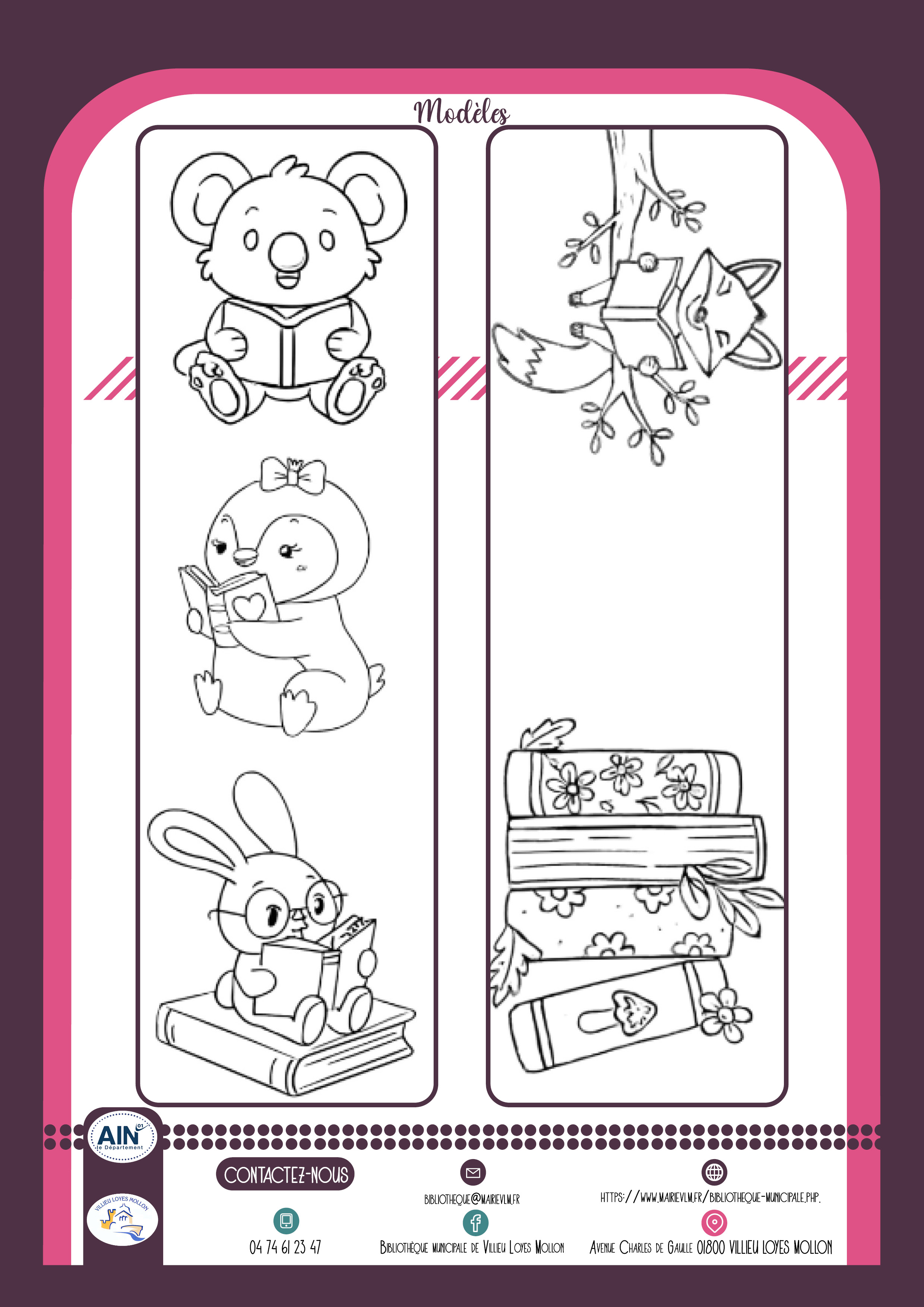 Imprimez les modèles selon votre catégorie, coloriez ou pliez, décorez et déposez vos réalisations du 6 février au 6 mars à la bibliothèque.