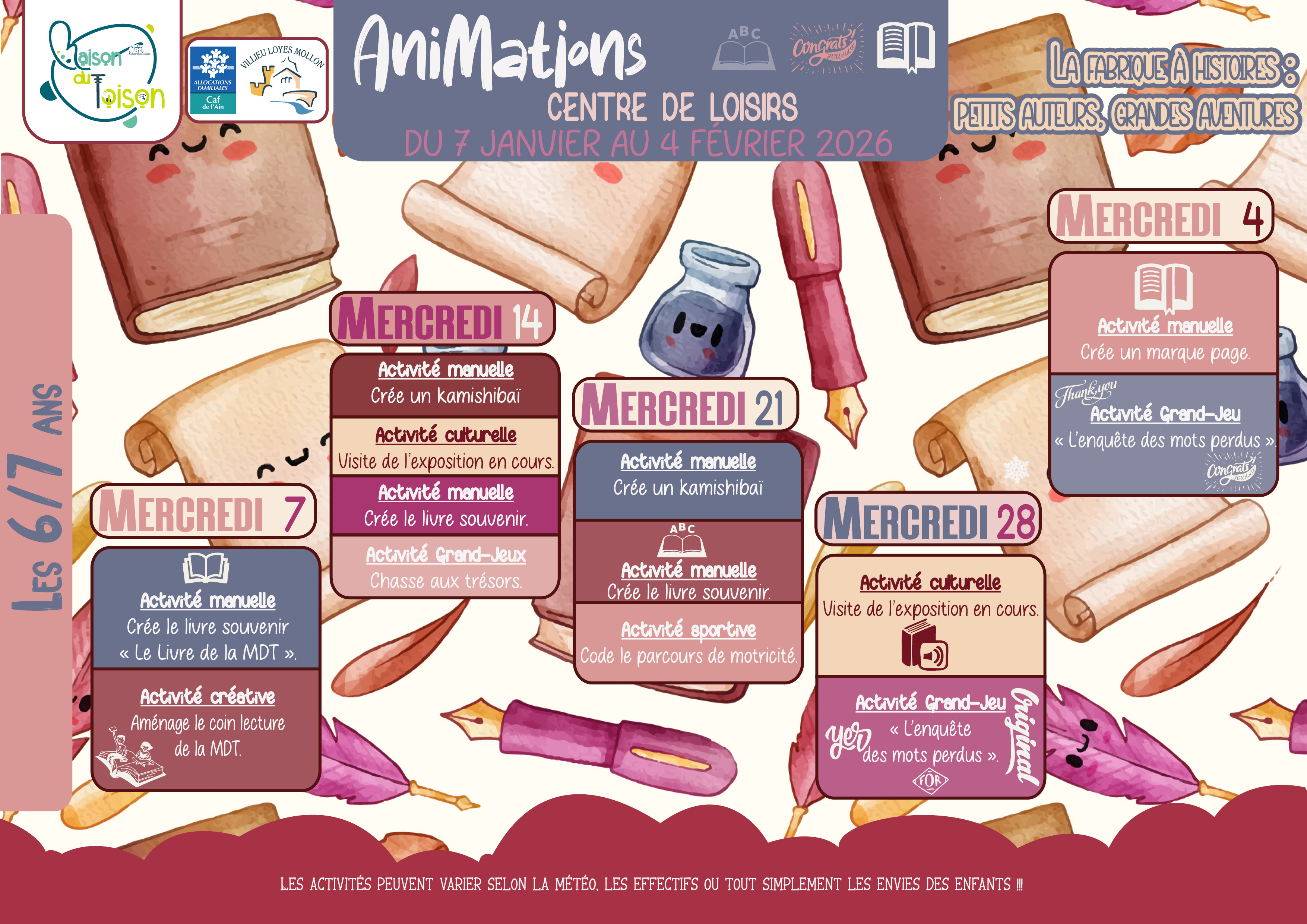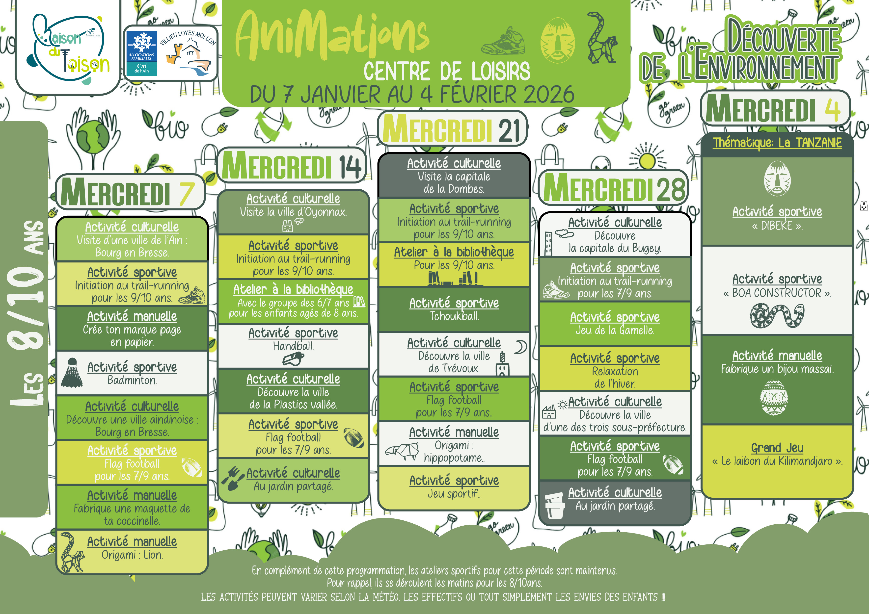 Programmes vacances d'automne du 27 au 31 octobre 2025 :